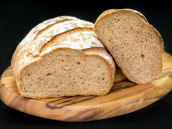Готовому бездрожжевому хлебу из ржаной муки даем полностью остыть и только потом нарезаем и подаем.
