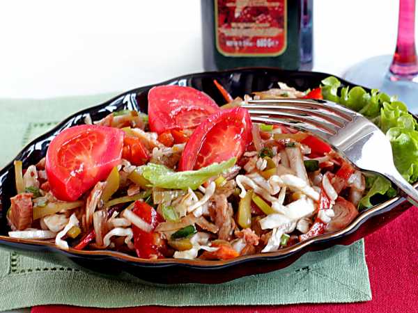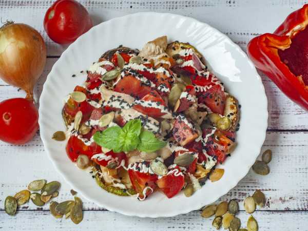 Достаточно дома приготовить салат и заправку, взять с собой лепешки, разогреть их на костре, и сервировать любимый салат без использования посуды.