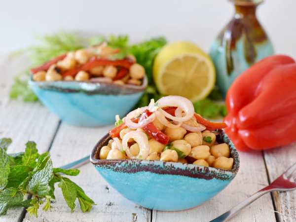 Непосредственно перед подачей салата питы прогреем на сухой сковороде (или на гриле), чтобы они стали более податливыми и не трескались при заполнении их салатом. Разрежем каждую питу пополам.