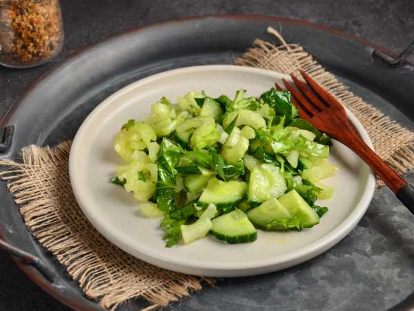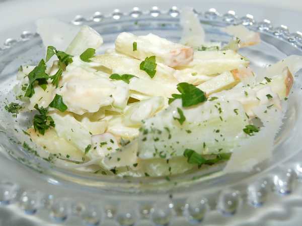 Для приготовления салата с сельдереем, яблоком и овощами подготовим продукты по списку.
