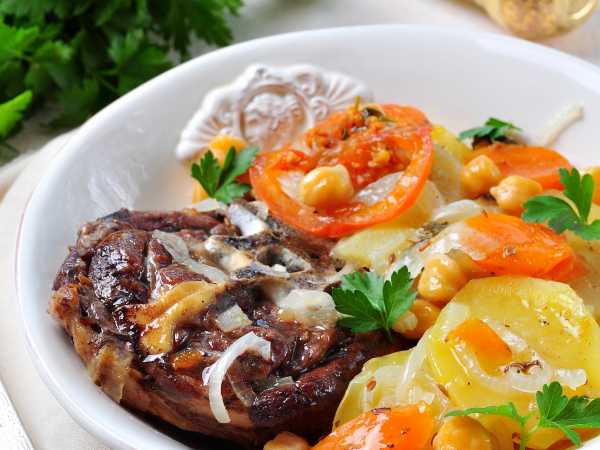 Продолжить приготовление абгушта 40 минут при слабом кипении. За 5 минут до конца приготовления всыпать по вкусу соль и специи.