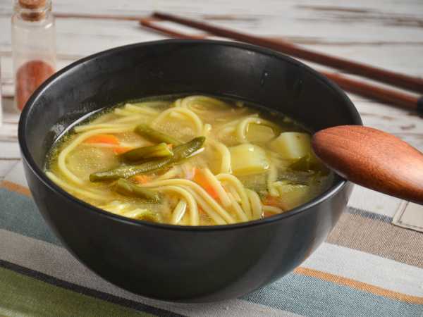 По ходу приготовления суп нужно пару раз промешать, чтобы рис не сбивался в ком. После 10 минут варки огонь выключают и дают супу постоять еще 10 минут. За это время рис доходит до мягкости. Дальше он начнет уже разбухать. Сделать тоже можно, но необходимости в этом нет.