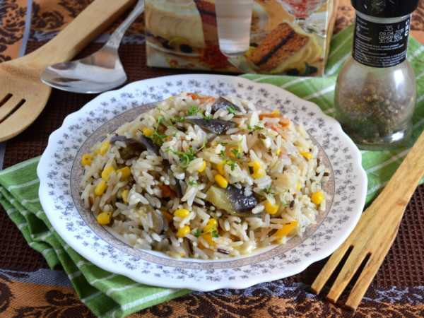 Влейте горячую воду, положите соль по вкусу, перемешайте, доведите до кипения, и уменьшив огонь до минимума, варите (под крышкой) около 20-30 минут, до полной готовности риса.