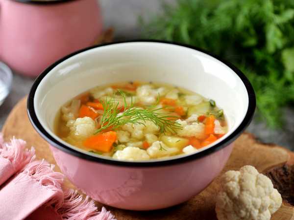 Всыпаем цветную капусту и варим суп 40 минут на слабом огне под крышкой, до полного размягчения капусты.
