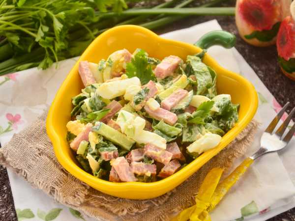 Прикройте емкость с салатом крышкой или пищевой пленкой и поместите в холодильник минимум на 30 минут, для того чтобы он настоялся и полностью охладился.