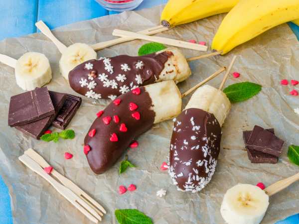 Посыпаем бананы шоколадом. Если вы будете добавлять орехи, сделайте это сейчас.