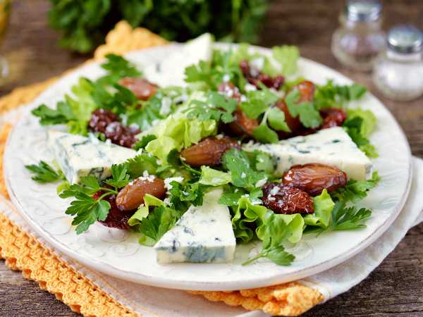 Салат с финиками и голубым сыром готов.