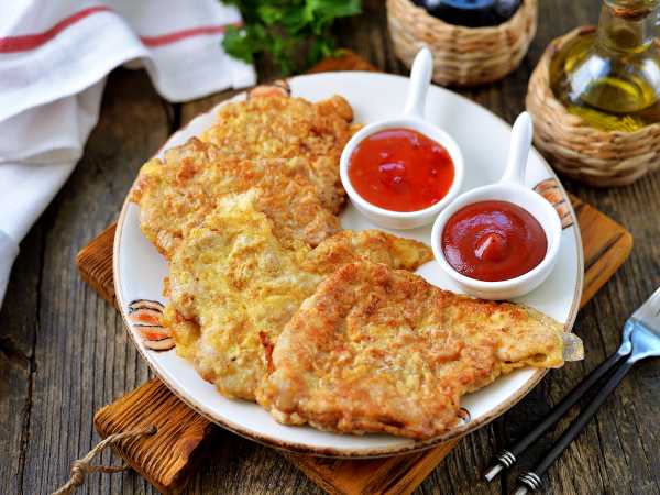 Порционные кусочки свинины отбейте с двух сторон до мягкости и равномерной толщины. Слегка посолите и поперчите.