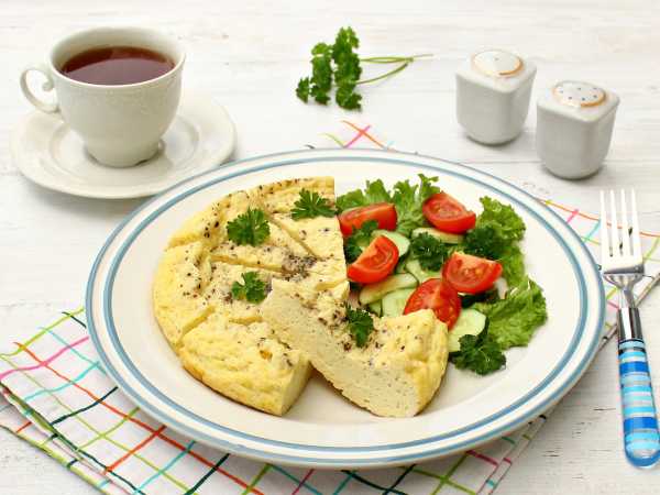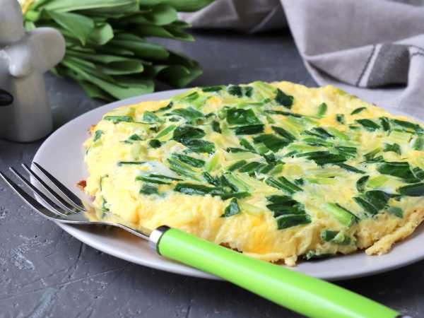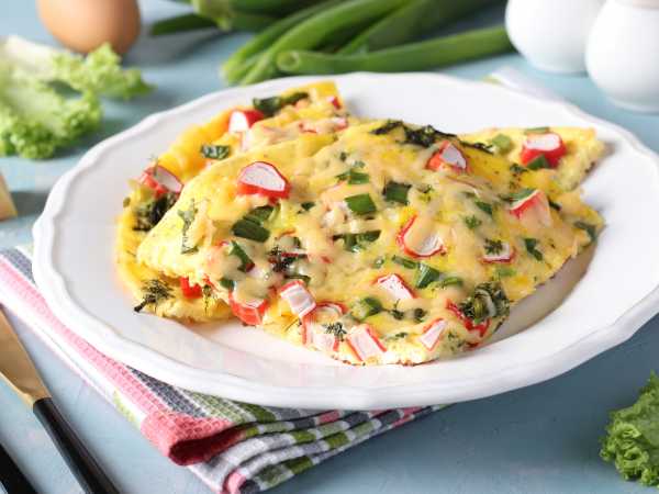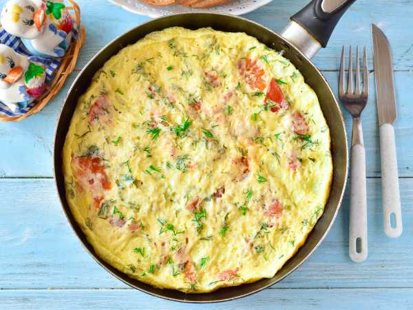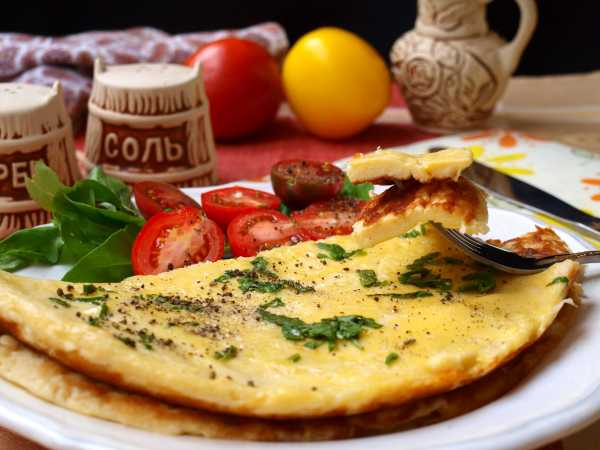 Подавайте омлет с зеленью и кусочком сливочного масла.
