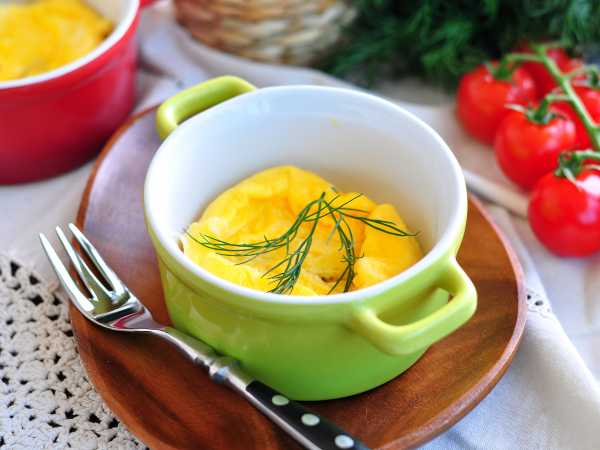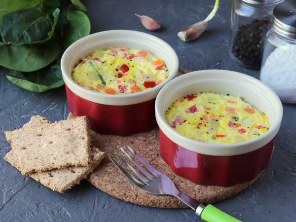 Порционные формочки смажьте маслом и поставьте на решетку пароварки, в которой уже кипит вода. Закройте крышкой. Готовьте омлет в пароварке минут 7-8. Он сначала станет очень пышным, а когда уберете крышку, его пышность спадет, это нормально.