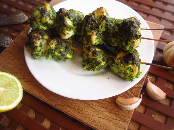 Дальше замаринованные кусочки куриного филе нужно нанизать на шпажки, чередуя их с овощами. Выложите на выстеленный фольгой противень и запекайте под верхним грилем 20-25 минут при 180 градусах. Время от времени смазывайте шашлычки с помощью силиконовой кисточки оставшимся маринадом.