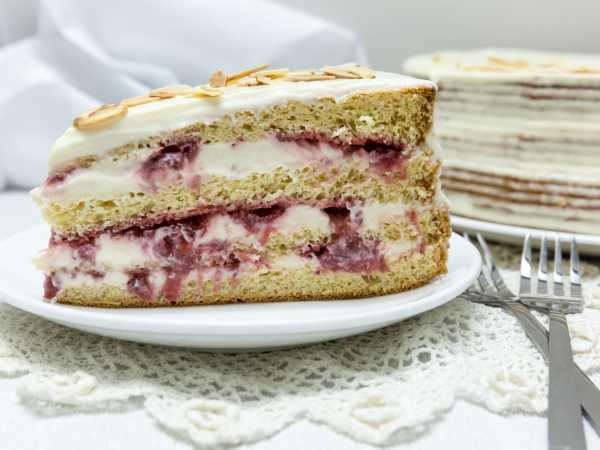 Торт «Молочная девочка» с творожным кремом готов. Он достаточно тяжелый по весу (хотя в диаметре всего 18 см) и очень сытный!