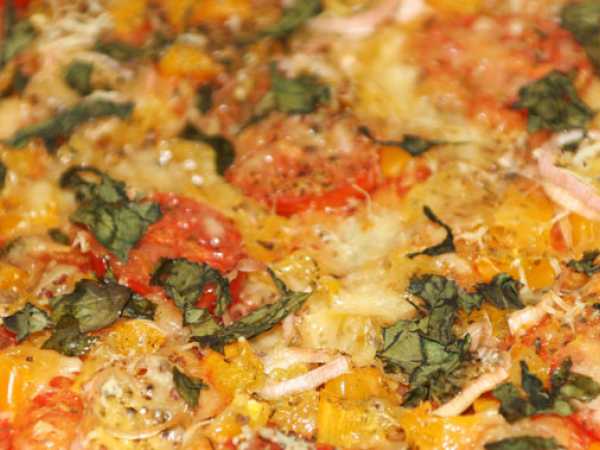 Отправляем сковороду с пиццей в хорошо разогретую духовку на 20 минут. Температура выпечки - не менее 220°C.