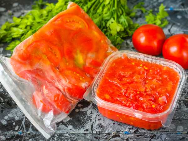 В заготовку не добавляется ни лук, ни чеснок, ни болгарский перец, так как такие овощи отдают свой аромат соседним заготовкам, например клубнике или малине, а при разморозке превращаются в бесформенную массу. К тому же и лук, и чеснок легко приобрести в зимнее время в магазине.