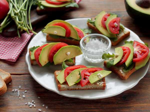 Нарежем помидор на полоски и откинем на сито, чтобы стекла лишняя жидкость. Авокадо очистим и нарежем тонкими ломтиками, сбрызнем лимонным соком, чтобы ломтики не потемнели. Печеный перец нарежем соломкой, удалив семена и обгоревшую кожицу.