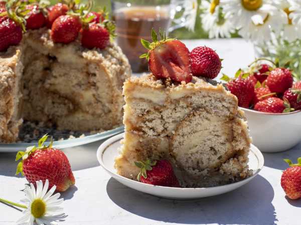Творожный торт с клубникой получается очень эффектным и главное - вкусным!
