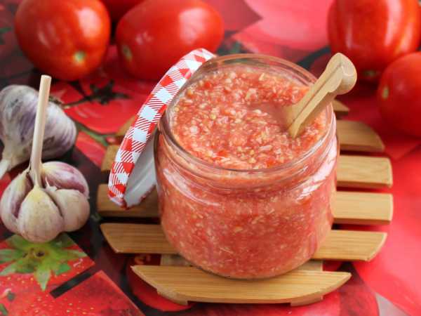 Добавим к помидорам хрен и чеснок, перемешаем. Если вы делаете хренодёр первый раз, добавьте сначала часть хрена, перемешайте и попробуйте на остроту.