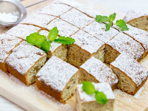 Готовый банановый пирог с маком перед подачей украсьте сахарной пудрой, глазурью или смажьте джемом.