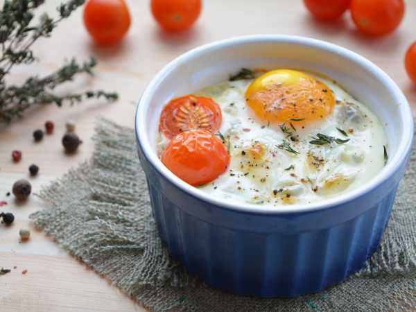 Поместите формочки в разогретую до 200 градусов духовку и готовьте блюдо 10-13 минут, до желаемой степени готовности яиц.