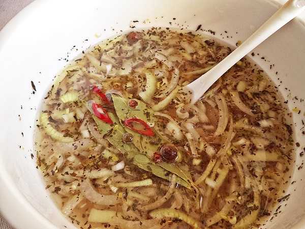 Осталось только мелко порезать листики базилика и отправить их в маринад.