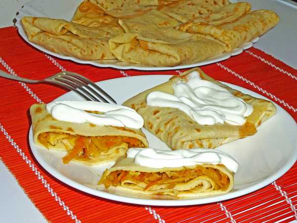 Хочу познакомить вас с так называемыми "ленивыми" блинами, которые пекутся, вернее, запекаются в духовке на большом противне, за один раз. Такие блины очень удобно печь, когда нет времени, или, наоборот, хочется чего-то оригинального. Такой блин может быть с различными наполнителями, когда к основному тесту добавляются начинки на свой вкус. Это могут быть и грибы, и рыбы, и курица, и различные овощи. Такие блины очень популярны в Финляндии, там они называются паннукакку.
