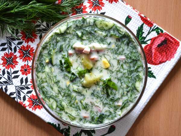Для приготовления окрошки по-армянски подготовьте продукты по списку. Огурцы, лук и ароматные травы помойте под проточной водой, обсушите. В Ашане мацун продается сейчас вот в таком шикарном горшочке, который потом можно использовать на кухне.
