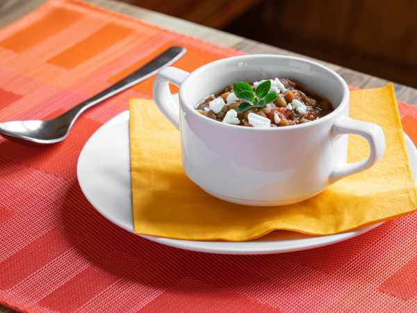 После того как суп разлит по тарелкам, едоки сами берут guarnicion и кусочки обжаренного белого хлеба. Кстати, хлеб не возбраняется размачивать в мисках с гаспачо, в данном случае это этикету абсолютно не противоречит.