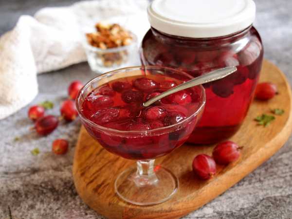 Горячий конфитюр из крыжовника разлить в стерильные баночки.