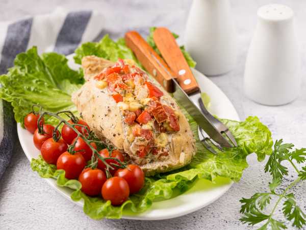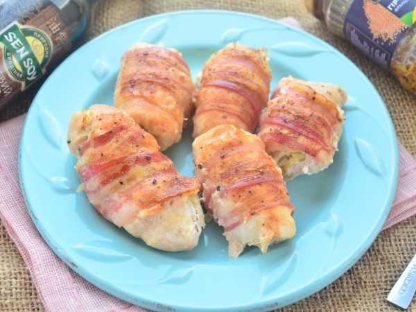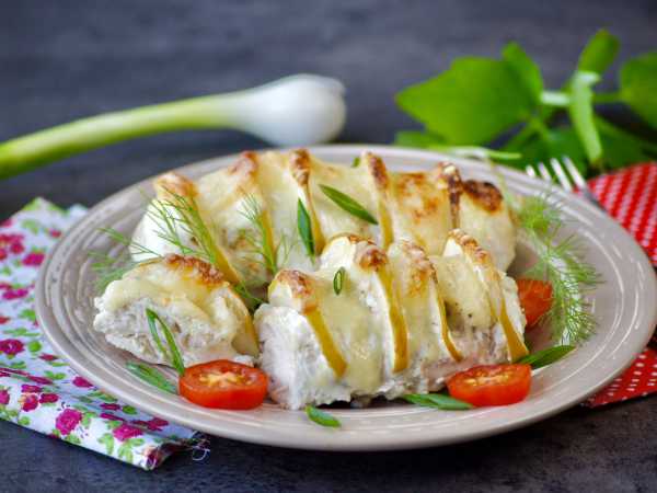 Запекать куриные рулетики с крем-сыром в духовке примерно 25-30 минут при 170 градусах, первые 20 минут готовить под фольгой, после подрумянить без фольги – можно специальной горелкой.
