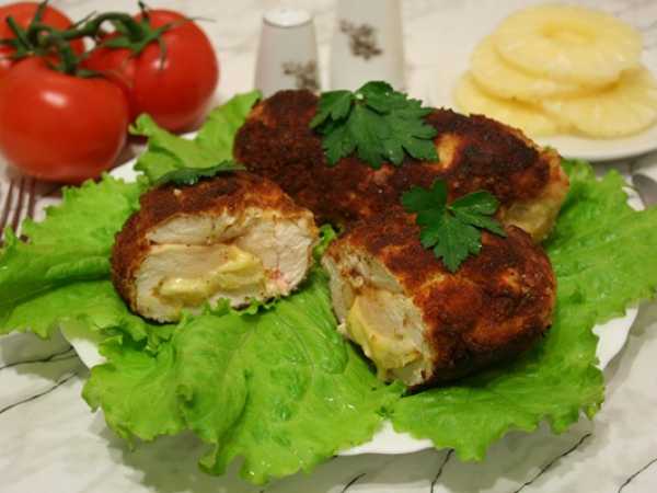 Куриное филе несколько раз ополоснуть под струей прохладной воды, после чего мясо просушить и разрезать каждое филе вдоль, но не до конца. После филе курицы раскрыть, как книгу, прикрыть пищевой пленкой и отбить кухонным молотком.
