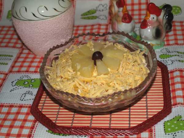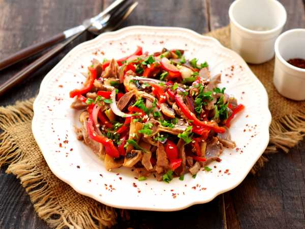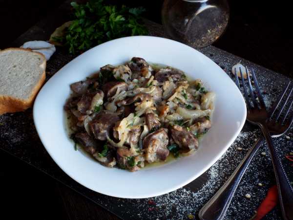Очень сытный, с богатым вкусом салат «Пуп земли» из куриных желудочков с грибами готов.