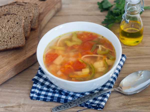 В этом блюде нет зажарки, вкус супа может показаться пустым. Добавленные индивидуально в каждую порцию сметана, пряности, немного растительного масла, свежая зелень будут очень кстати.