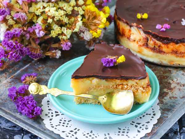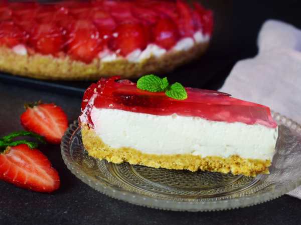 Когда на улице очень жарко, такой тортик станет отличным десертом. Желатина для торта я взяла 2 пачки по 15 г, думаю, можно взять и немного меньше (около 20 г), должно застыть, только будет чуть дольше.