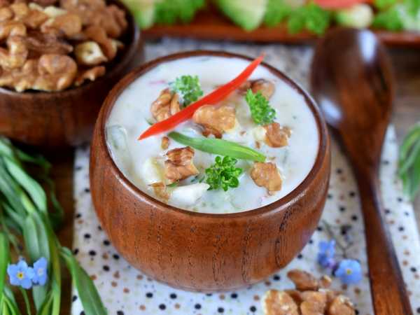 Суп из тушеных помидоров и адыгейского сыра нужно подавать в горячем виде сразу после приготовления.