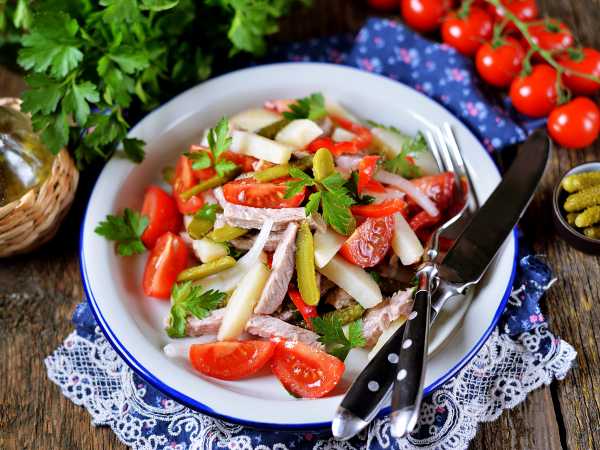 Салат «Август» из щедрых даров последнего месяца лета - это в чистом виде витаминная бомба без добавки лишних жиров и сахаров. В нем нет масла, нет сахара и нет соли. Он приправлен яблочным соком, мятой и бальзамико.