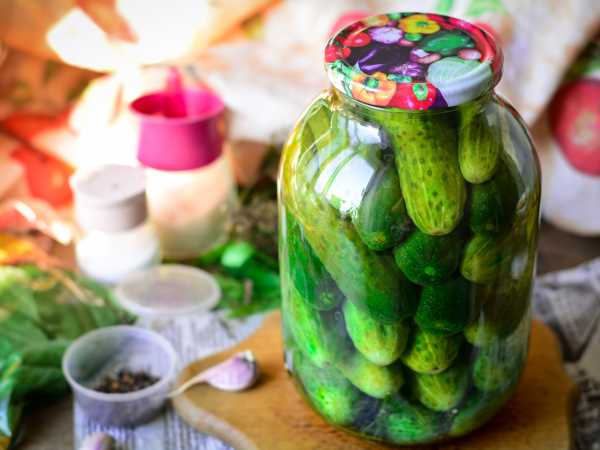 Заливаем огурцы отстоявшимся рассолом под самый верх. Сверху добавляем зонтик укропа. Закрываем банки плотными капроновыми крышками.