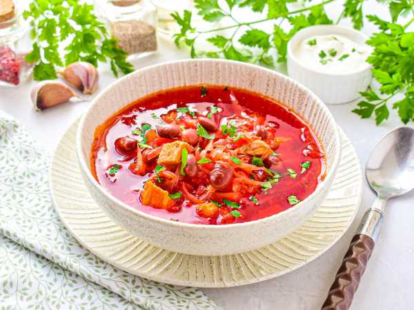 Данное блюдо одновременно и веганское, и вегетарианское, и постное. Но оно подойдет всем и каждому в летний период. Нежирный и легкий в холодном виде со сметаной - это самый лучший суп для жаркого дня. Но никто не запрещает готовить блюдо зимой и подавать горячим. Главное украшение - это свежая зелень. Поэтому обязательно приберегите её и для зимы. Ну а летом найти зеленушку не составит труда, она действительно сделает свекольник с фасолью вкуснее.