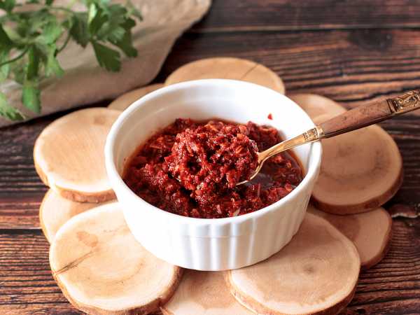 Я в этот раз приготовила "Скордалью" - закуску. Ее принято подавать с отварной свеклой.
