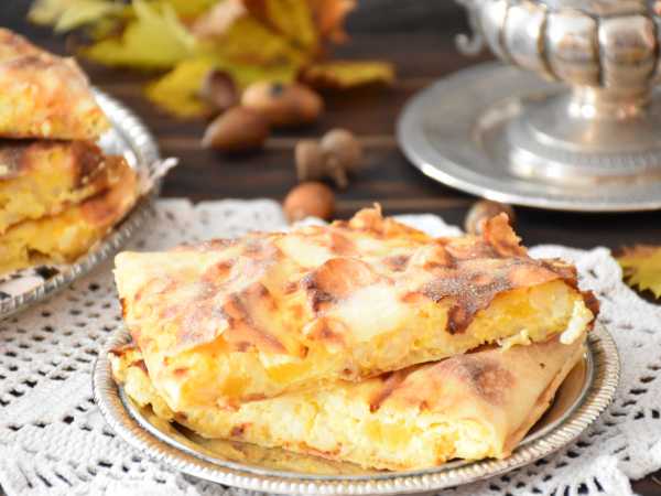 Остывший пирог разрежьте порционными кусочками и подавайте на стол.