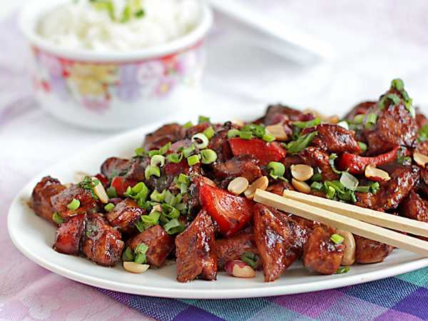 Чтобы блюдо получилось более насыщенным, кроме сладкого перца в сковороду можно добавлять пекинскую капусту. Крахмал предпочтительнее использовать рисовый, но пойдет и кукурузный. Остроту регулируйте на свой вкус.