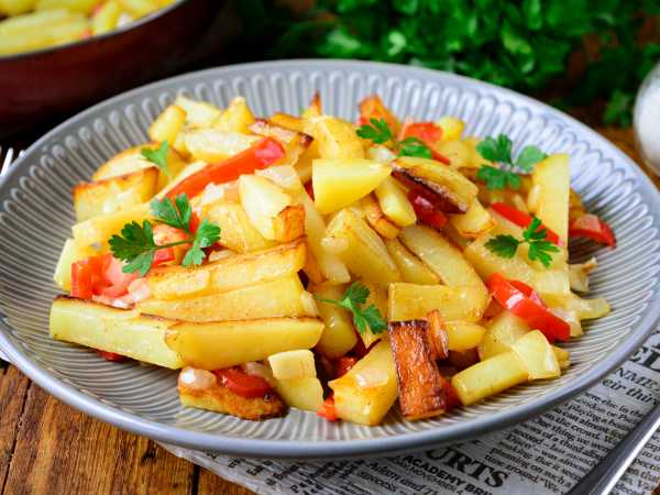 Через 20-25 минут, картошку необходимо один раз перемешать, для того чтобы она равномерно подрумянилась.