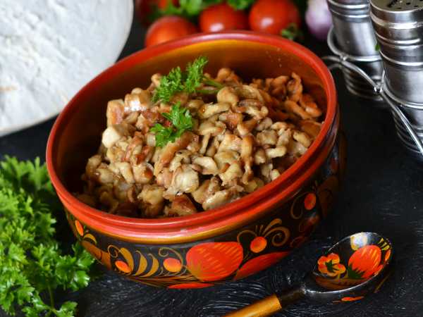 Добавим ее в сковороду к луку и продолжим пассеровать на небольшом огне.