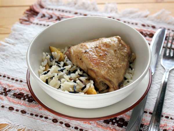Подать курочку с любым гарниром, который вам нравится, посыпать зелёным луком.