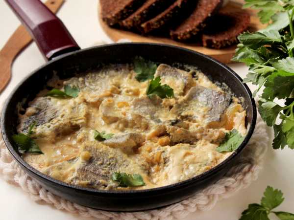 Сегодня приготовим блюдо, которое подчеркнет достоинства несравненного минтая. Мы потушим рыбу с картофелем и луком в сметанном соусе. Благодаря бульону мясо рыбы останется сочным и нежным, а картошка на гарнир – самый лучший вариант.