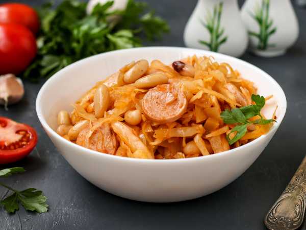 Даем тушеной капусте немного остыть, после чего ее можно подавать к столу.