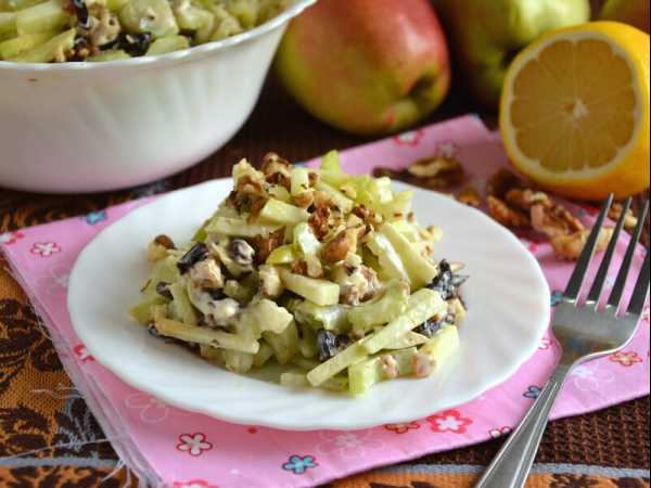Рубленые грецкие орехи - по желанию. Их можно добавить сразу же или посыпать сверху на готовый салат.