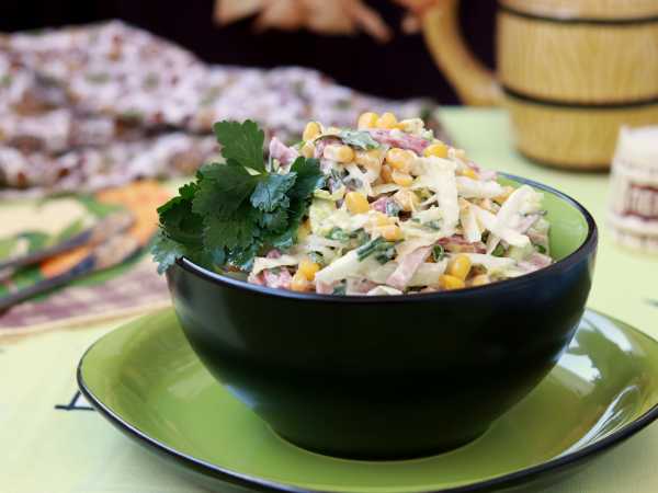 Ну, и подаём салат из кольраби и крабовых палочек со свеженарезанной петрушкой. Просто и вкусно!