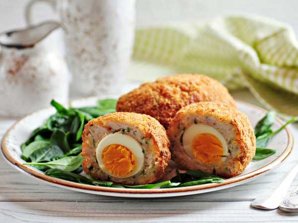 Далее влажными руками будем отщипывать кусочки фарша, придавая им форму лепешки. На серединку лепешки кладем яичную начинку, после чего скрепляем концы и придаем заготовке овальную форму. Обваливаем заготовку в панировочных сухарях. Сделаем таким образом все заготовки для зраз.