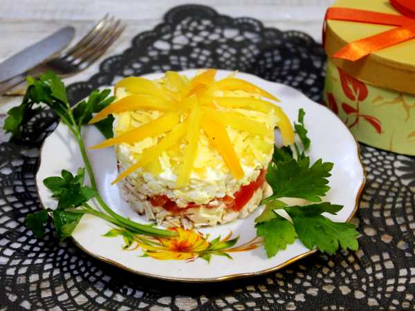 Зелень петрушки измельчаем и также добавляем в салат. Перемешиваем все ингредиенты салата.