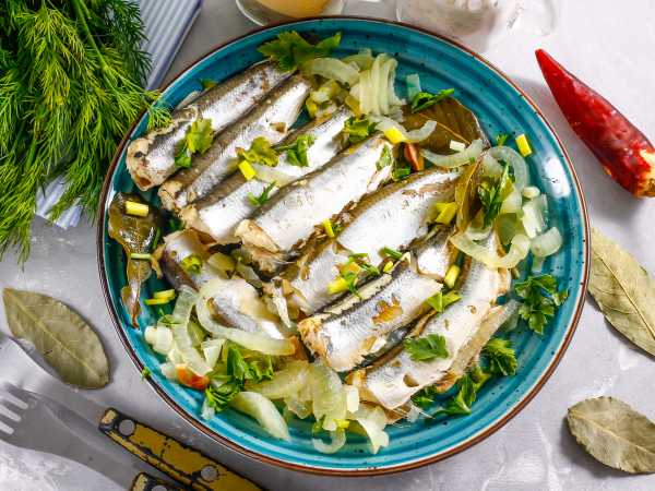 Лук красный или фиолетовый нарежем колечками и замаринуем в смеси уксуса и воды на 10 минут.